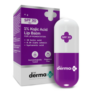 The Derma Co 1% Kojic Corrosive Lip Analgesic With Alpha Arbutin & Hyaluronic Corrosive, Spf 30 Dad++ For Dull & Pigmented Lips – 4G, Off White